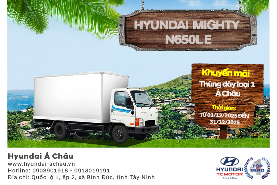 Tháng 12 Bùng Nổ Ưu Đãi: Mua Hyundai Mighty N650L E – Khuyến mãi thùng dày loại 1 Á Châu